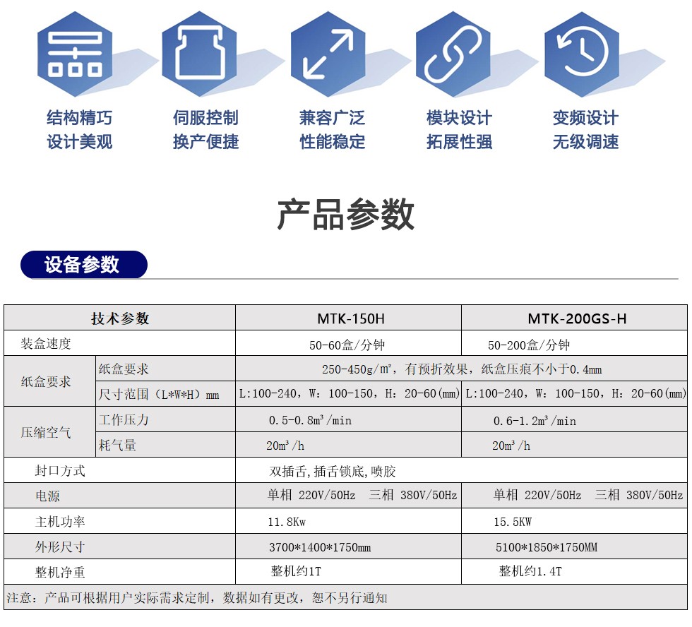 多功能兼容性 :可适配多种盒型(如插舌盒、粘胶盒、扣底盒以及挂耳盒等)和不同尺寸的产品。